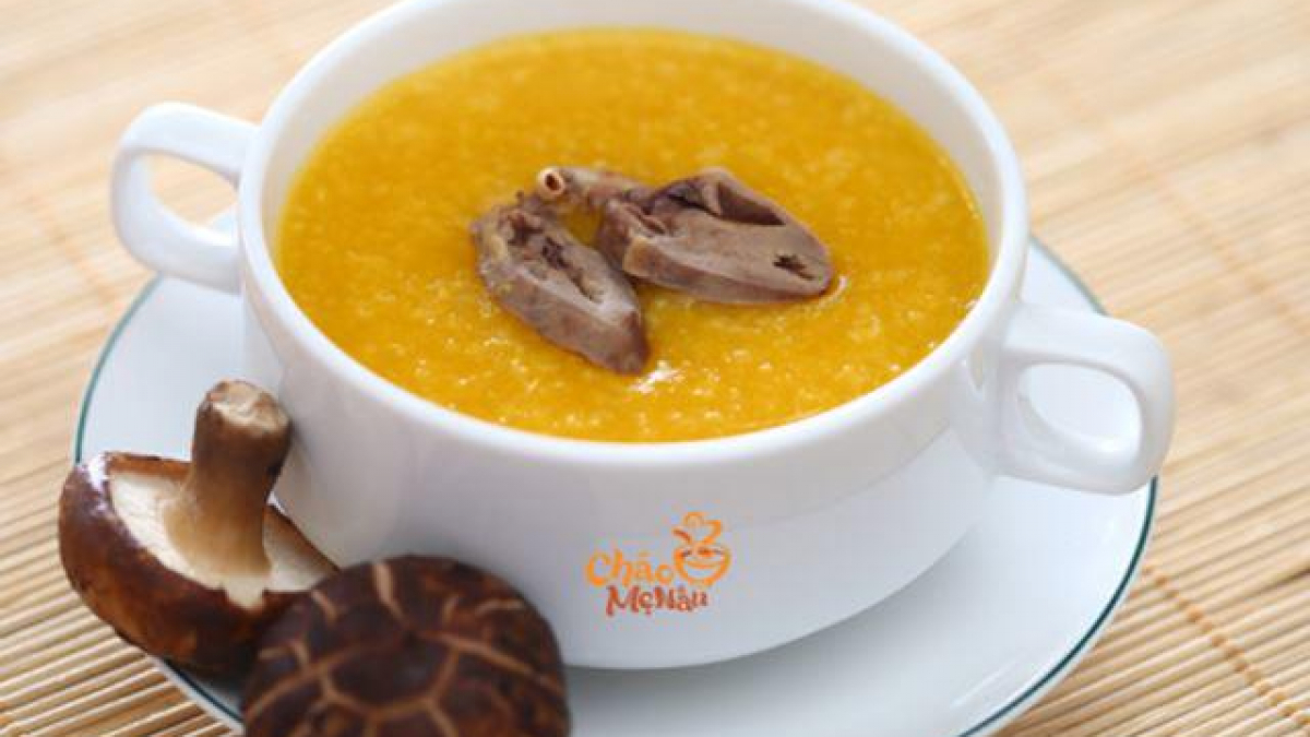 - Nấu cháo, thêm bí đỏ và tim gà, nấu thêm 2–3 phút.