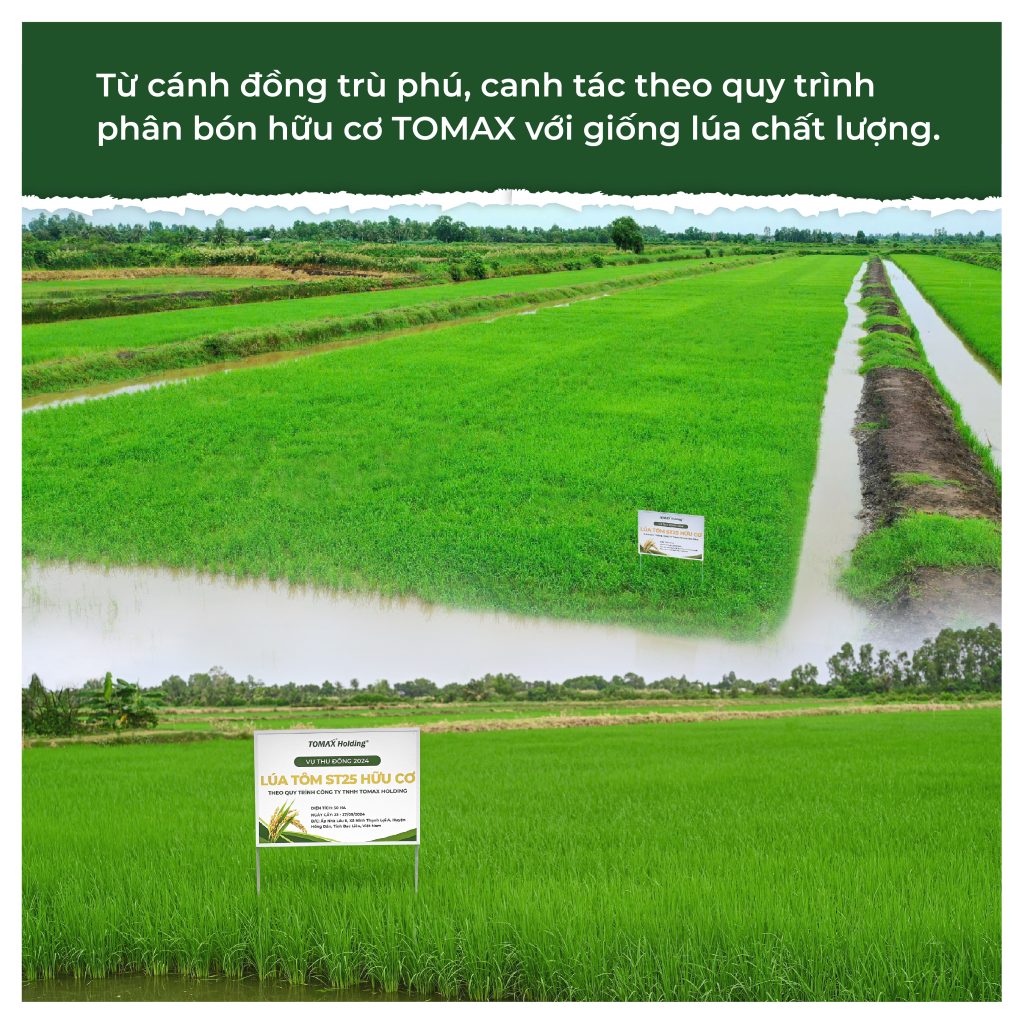 Gạo ST25 Lúa Tôm Deli Rice được trồng ở vựa tôm Bạc Liêu riêng biệt – nơi có thổ nhưỡng lý tưởng để sản xuất gạo và nuôi tôm. Quy trình sản xuất của gạo ST25 được áp dụng theo tiêu chuẩn chất lượng cao, từ khâu gieo trồng cho đến thu hoạch. Sử dụng 100% phân bón hữu cơ vi sinh đa lượng của TOMAX. Quy trình gieo trồng được thực hiện dưới sự giám sát nghiêm ngặt, đảm bảo sản phẩm không chỉ đạt chất lượng vượt trội mà còn an toàn và thân thiện với môi trường.